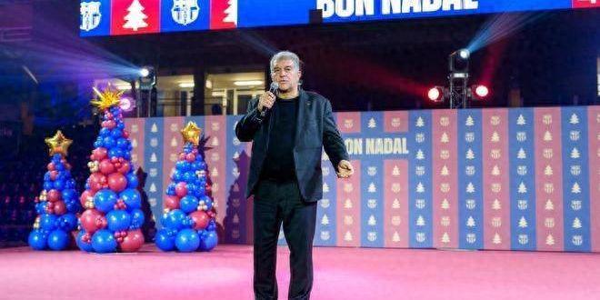 12月18日晚,巴塞罗那俱乐部主席拉波尔塔在巴萨篮球馆主持了俱乐部一年一度的传统圣诞晚宴。包括男女足一线队、各职业梯队全体球员、教练组成员以及俱乐部全体员工在内的数百人齐聚一堂,共庆佳节。